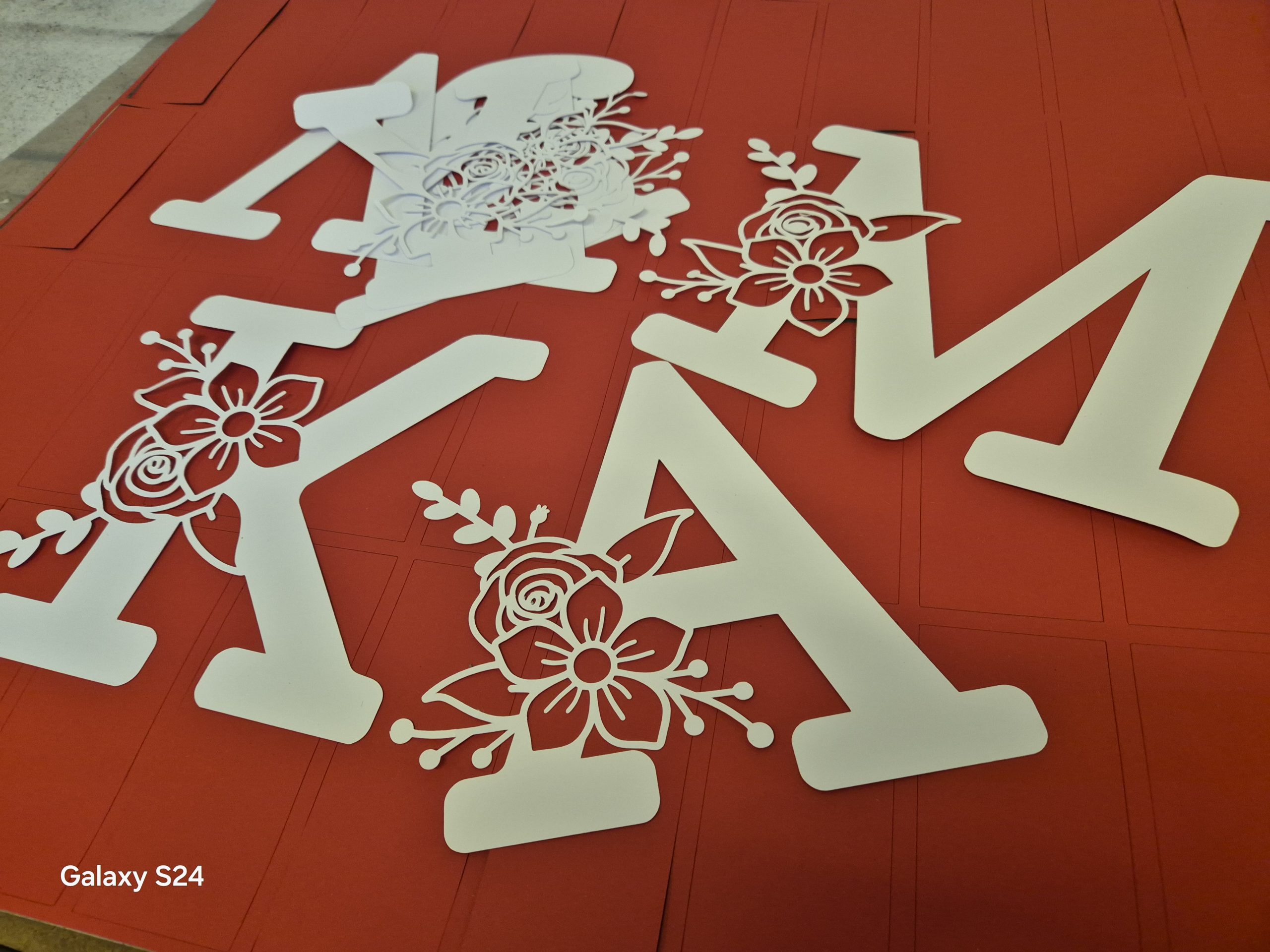 Wysokość jednej litery z ozdobnikiem kwiatowym 28 cm.