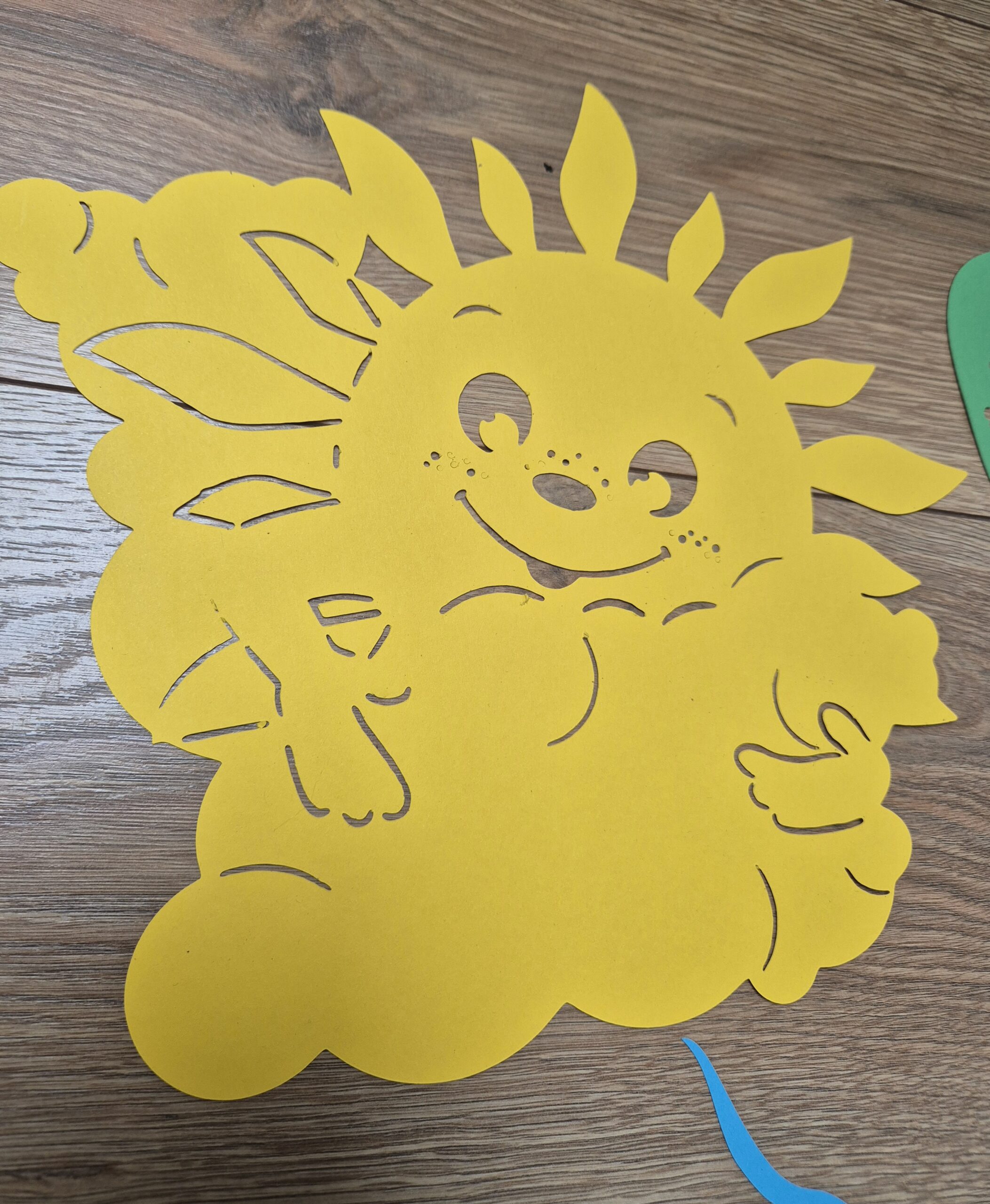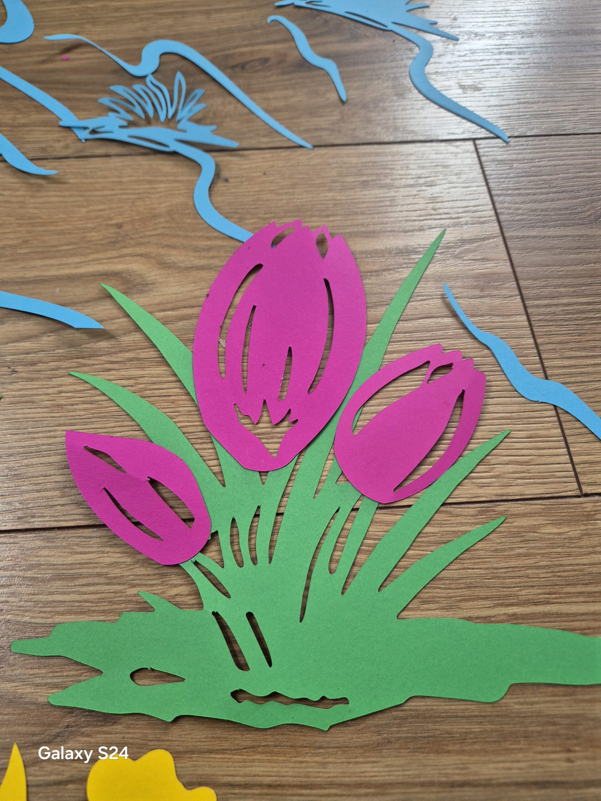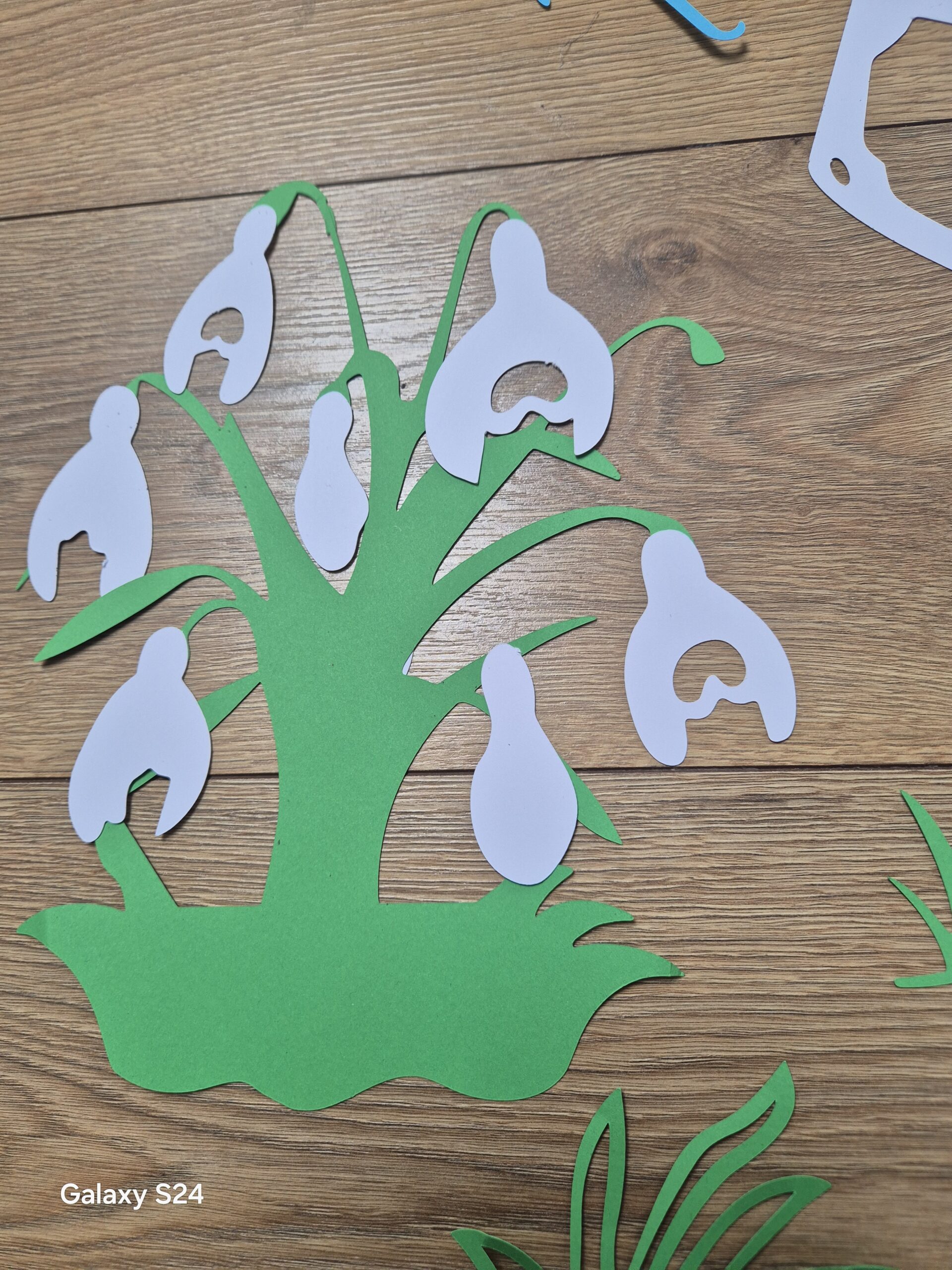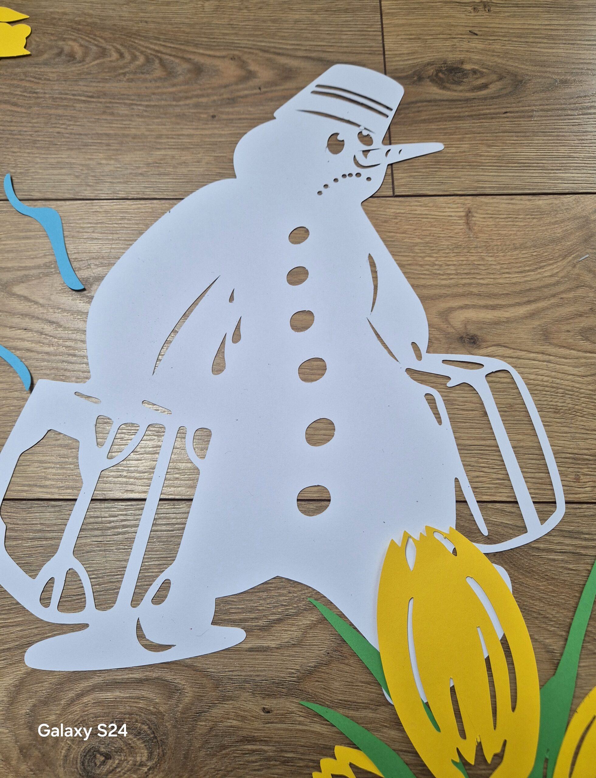 Cała dekoracja wykonana z papieru technicznego, wycięta na gotowo do zawieszenia na tablicy.
