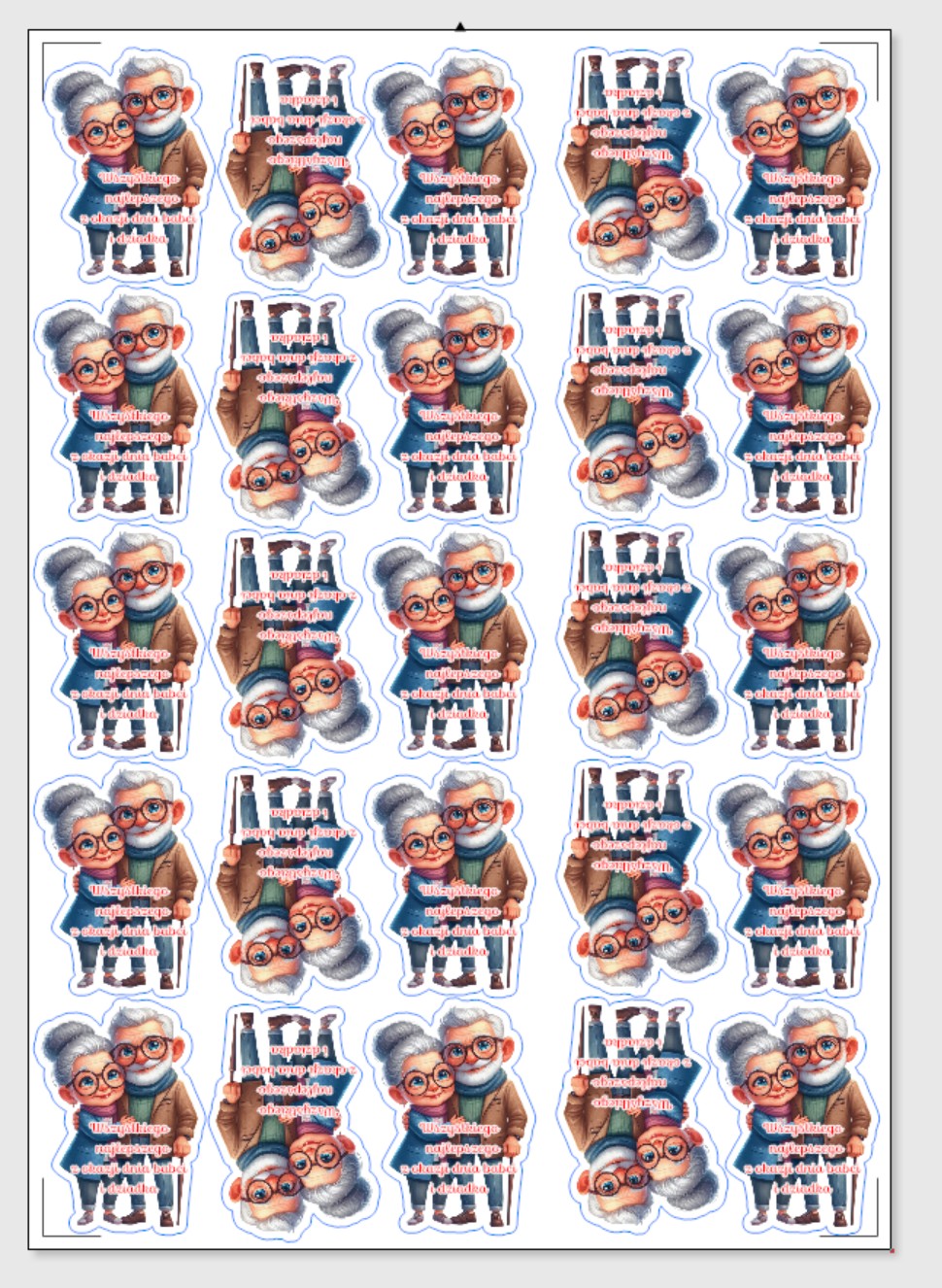 Każdy element jest wydrukowany a następnie wycięty po obrysie.